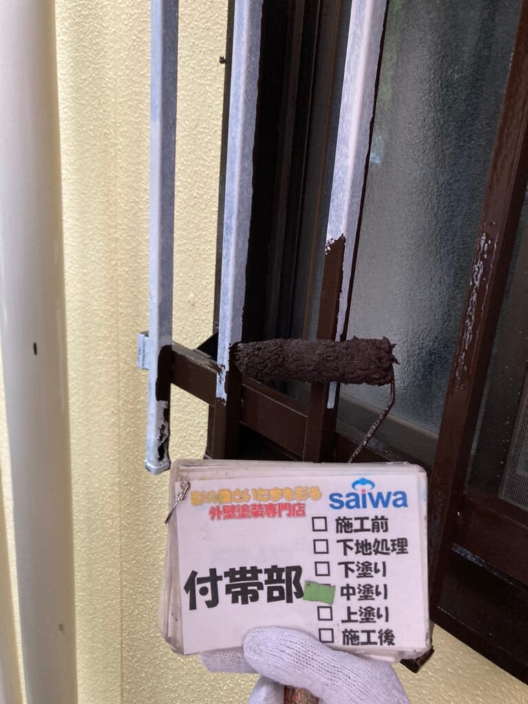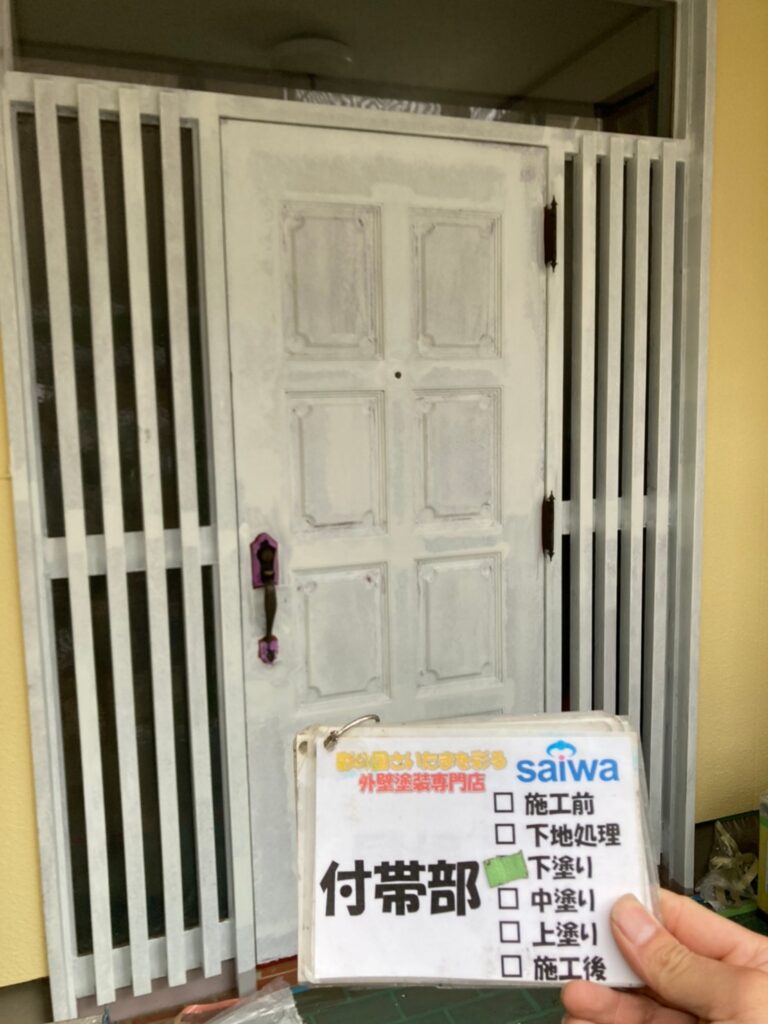 中塗りを塗布します。白色で塗装を施工させていただきます。