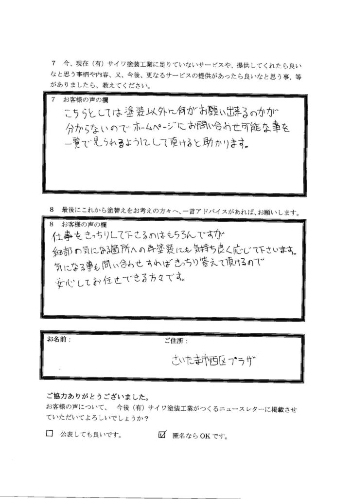 埼玉県さいたま市西区プラザE様邸にて外壁塗装工事を施工しました。
