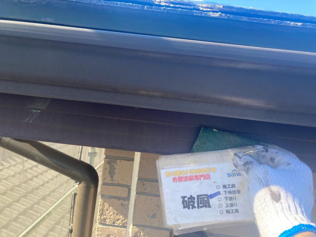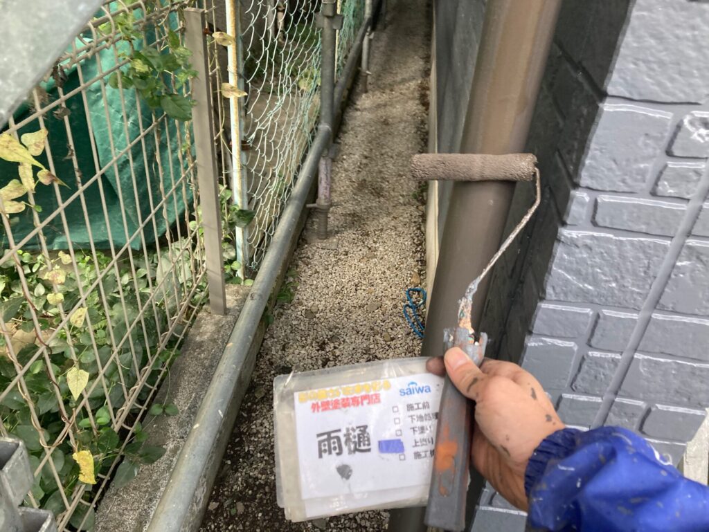 塗装の際は雨樋のバンドの内側部分までしっかりと塗ります。