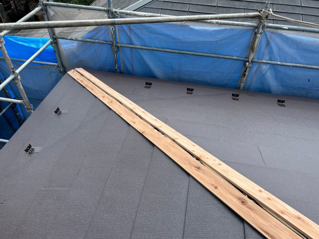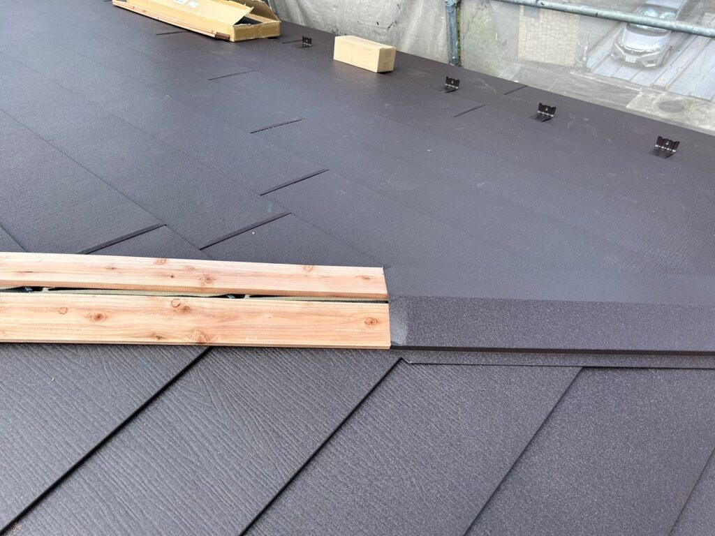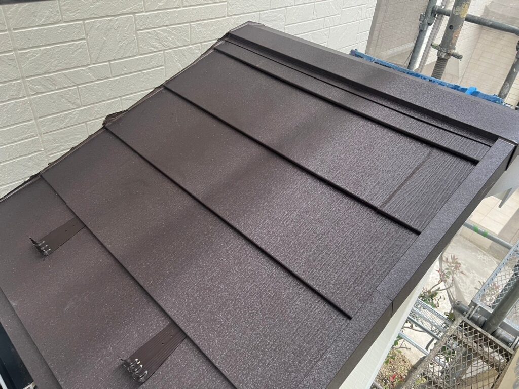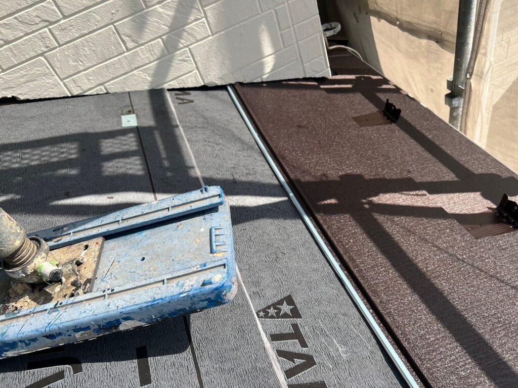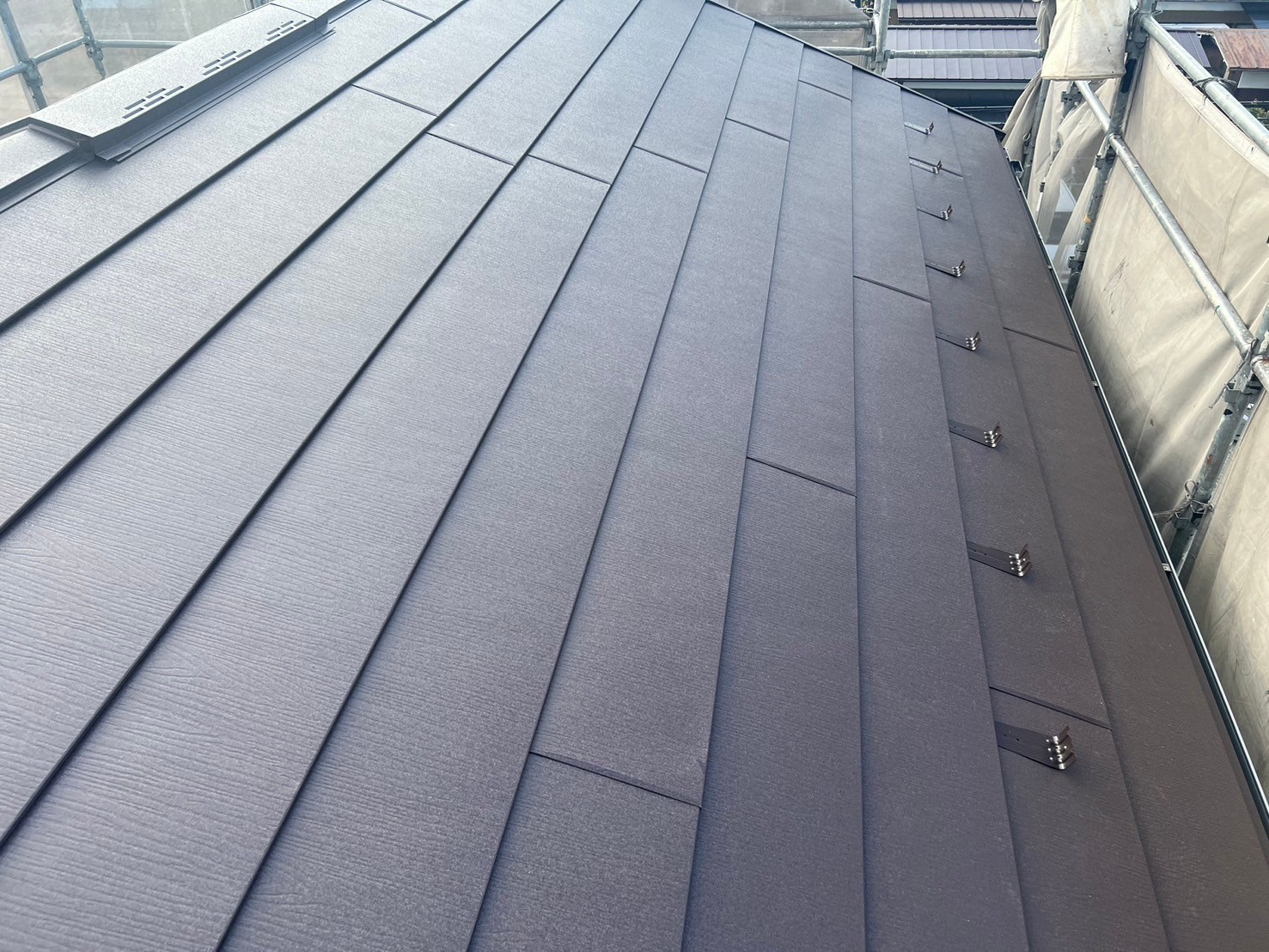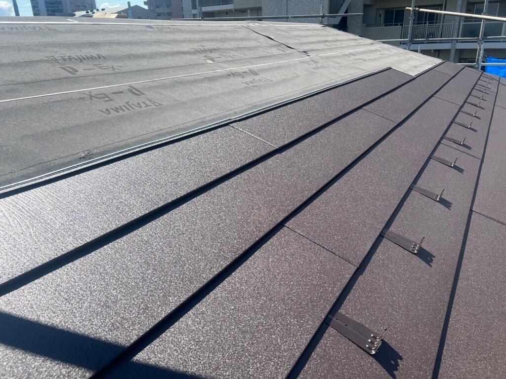 屋根は、劣化が進んでいたグリシェイドNEOの上から「スーパーガルテクト」を使用してカバー工法で施工しました。