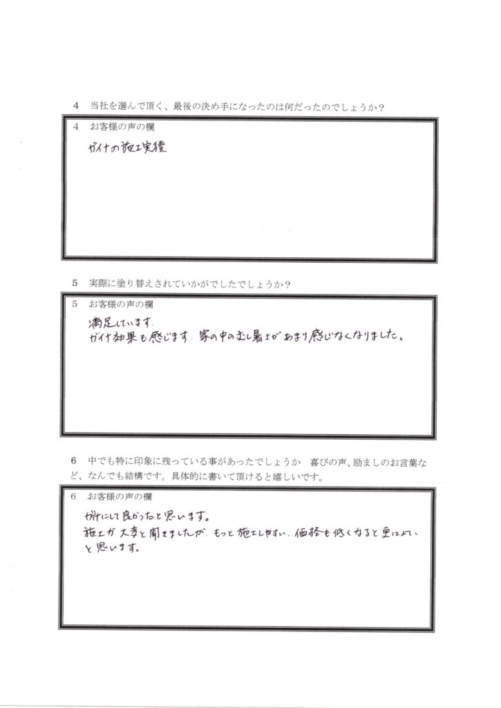 外壁の塗装後、「室内のこもるような暑さがやわらいだ気がする」と効果を実感していただけたようで、私たちも嬉しく思います。