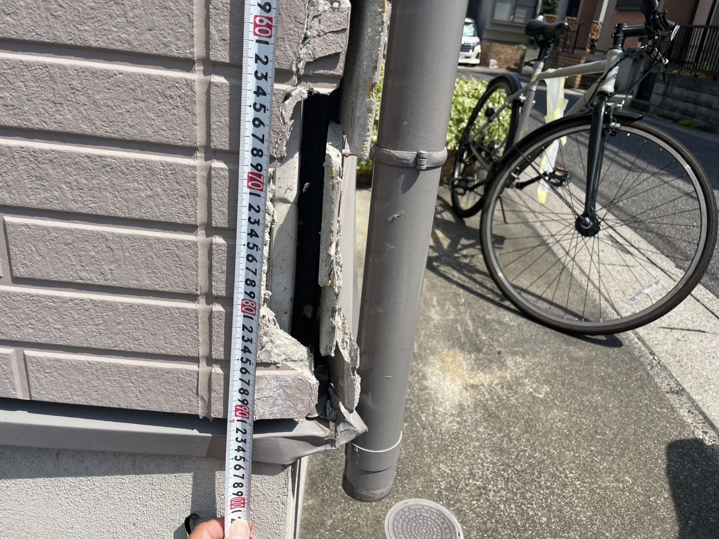 今回は幸いにも損傷の範囲は大きくありませんでしたが、車や自転車の接触などによる外壁の破損は、見た目以上に建物へ衝撃を与えることがあります。