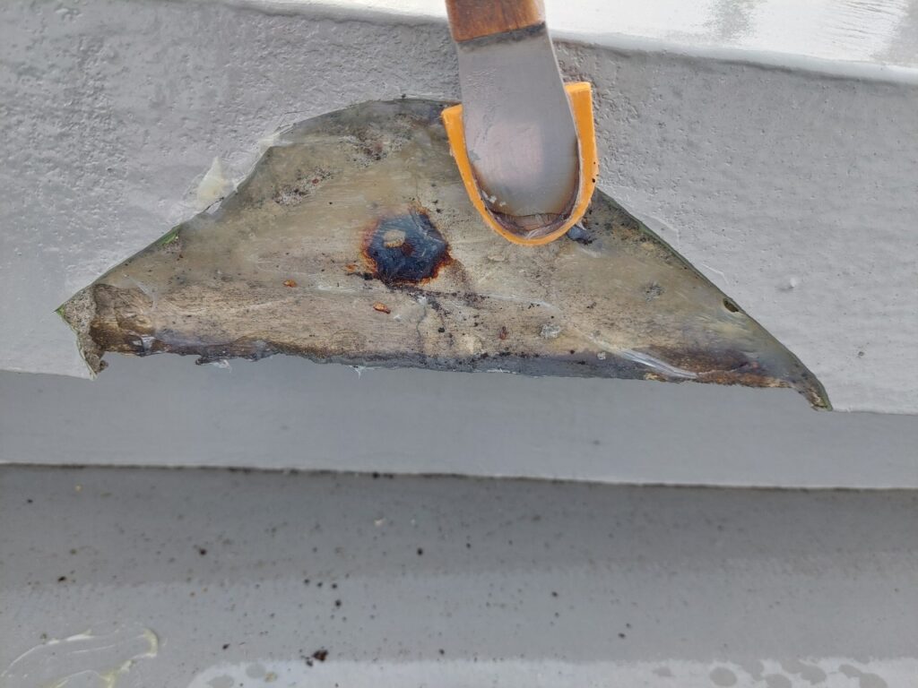 表面の汚れや雨水が溜まりやすい箇所もあり、このまま放置すると雨漏りや漏水による設備トラブルにつながる可能性がありました。