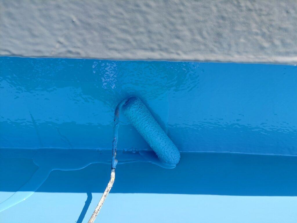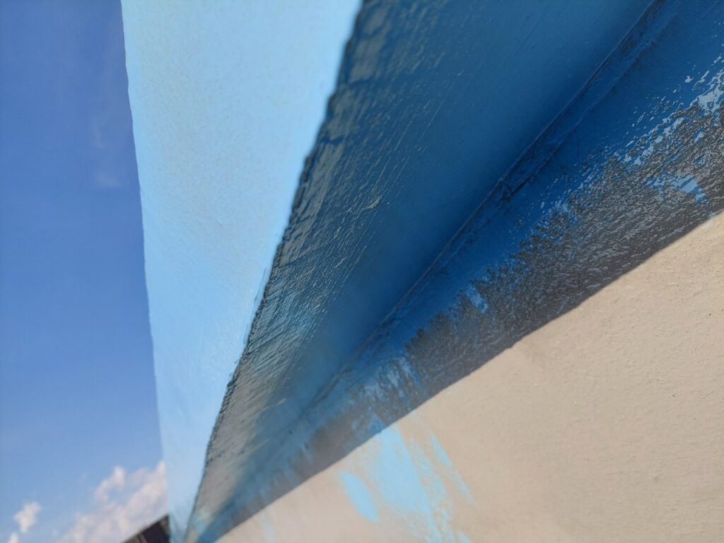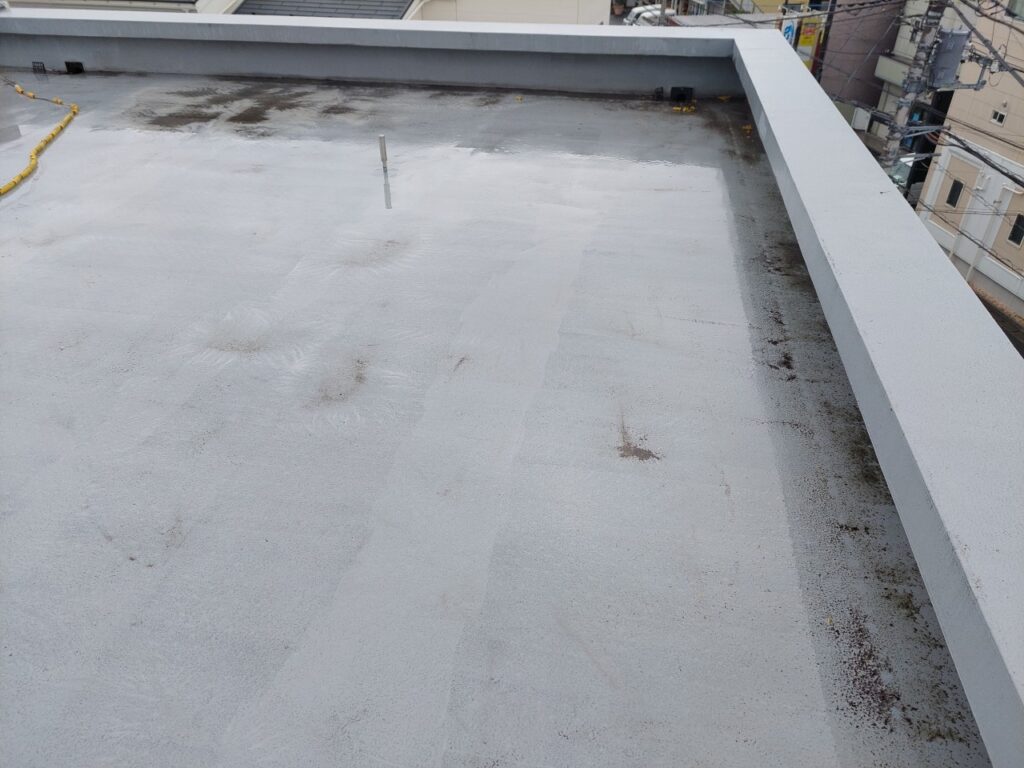 この工程により、屋上全体に継ぎ目のない強固な防水層が完成し、雨水の侵入をしっかり防げる状態となりました。