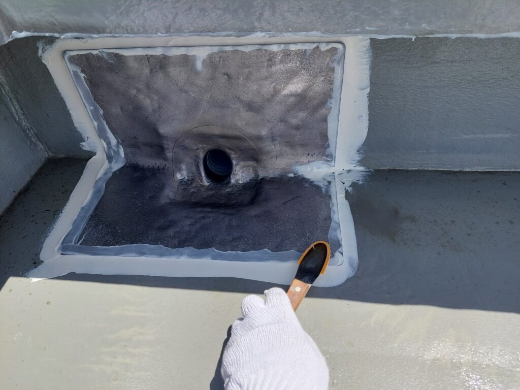 ドレン周りを丁寧にシーリング処理し雨漏り防止を高める防水施工|さいたま市の施工事例