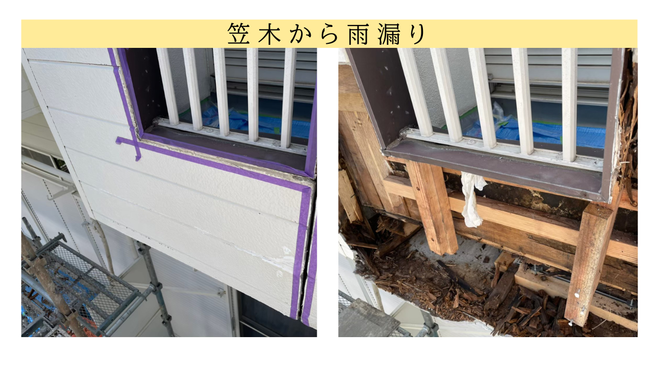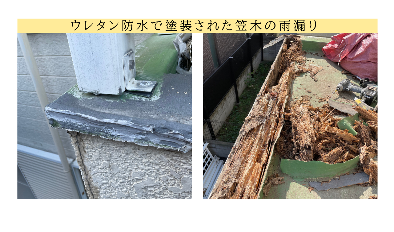 笠木はベランダ腰壁や内部構造にも影響するため、雨漏り調査では表面だけでなく内部状況の確認が欠かせません。