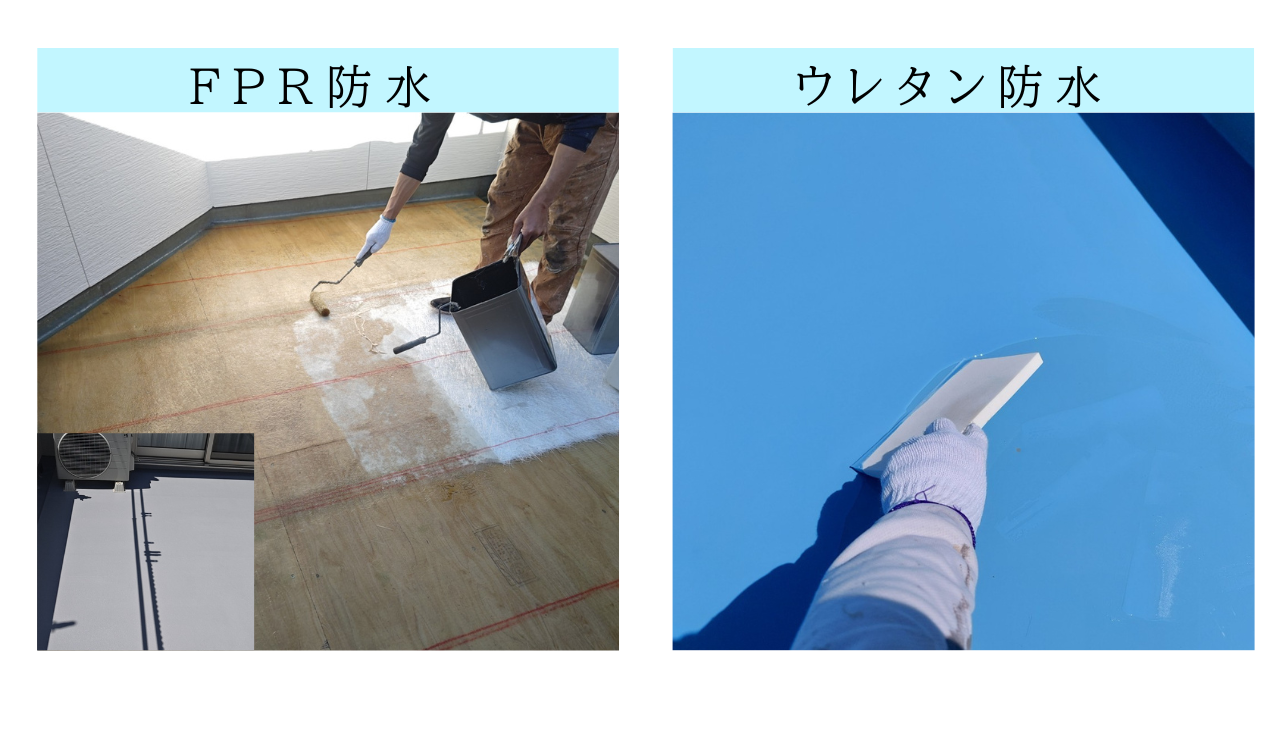 一方で大きな亀裂が入っている場合やトップコートの塗り替えだけでは防水性の回復が難しい場合には、FPR防水やウレタン防水工事を行い新たに防水層を形成します。