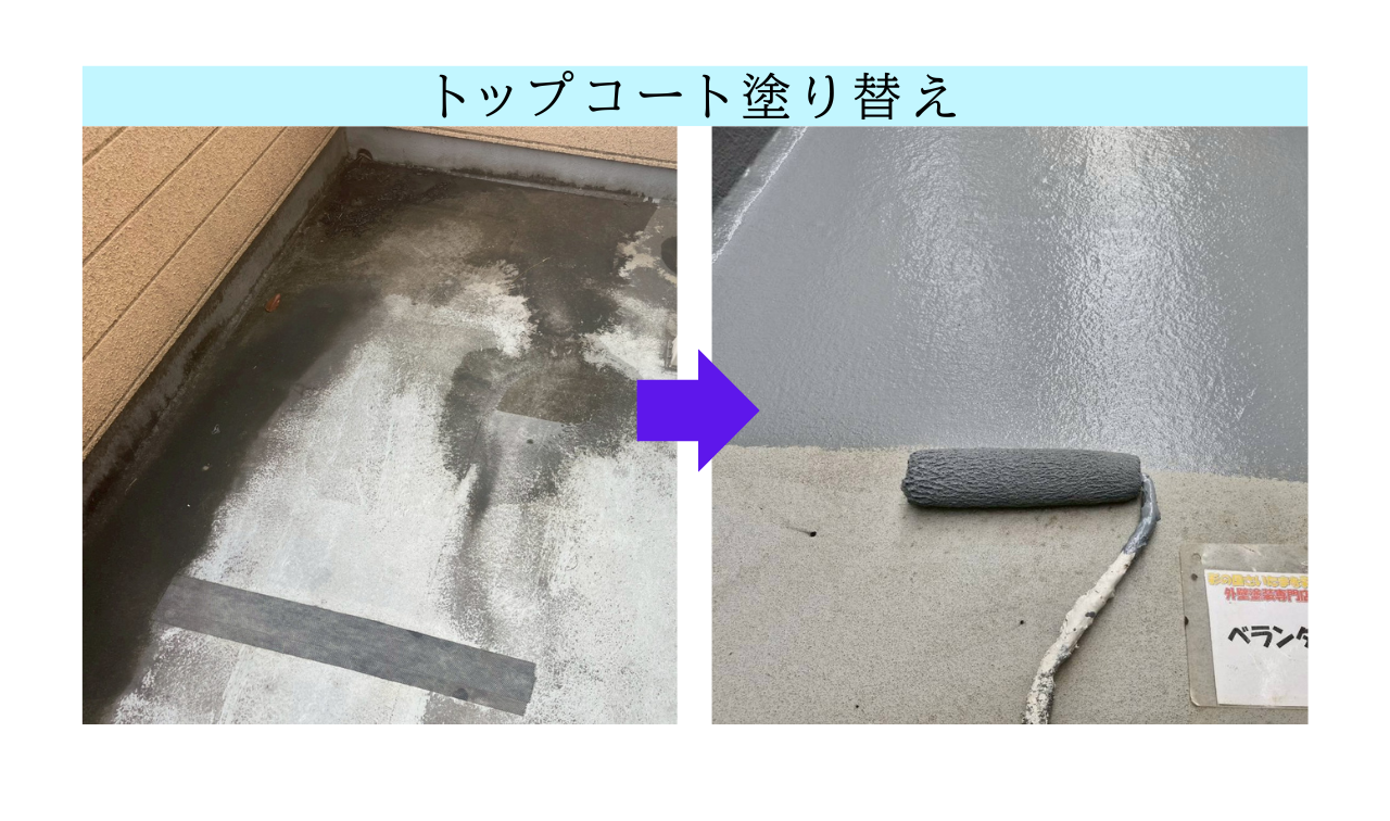 トップコートは防水層そのものを守る役割があり、定期的な塗り替えが予防に繋がります。