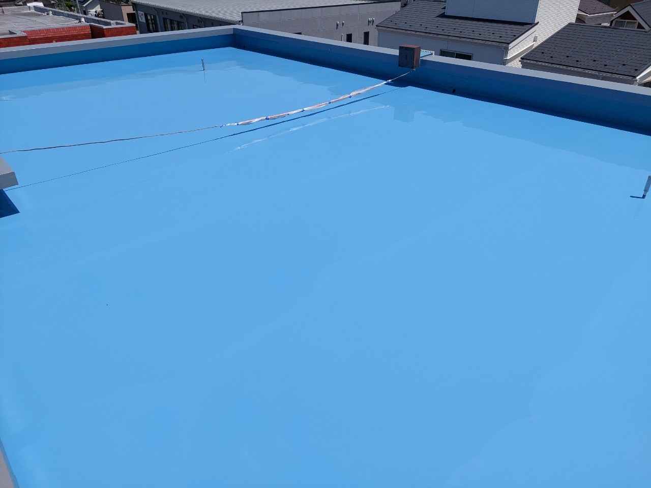 塗料のように施工するため、複雑な形状の場所にも対応しやすく、住宅のベランダや屋上だけでなく、ビルやマンションの屋上・共用廊下・階段など、さまざまな場所で採用されています。