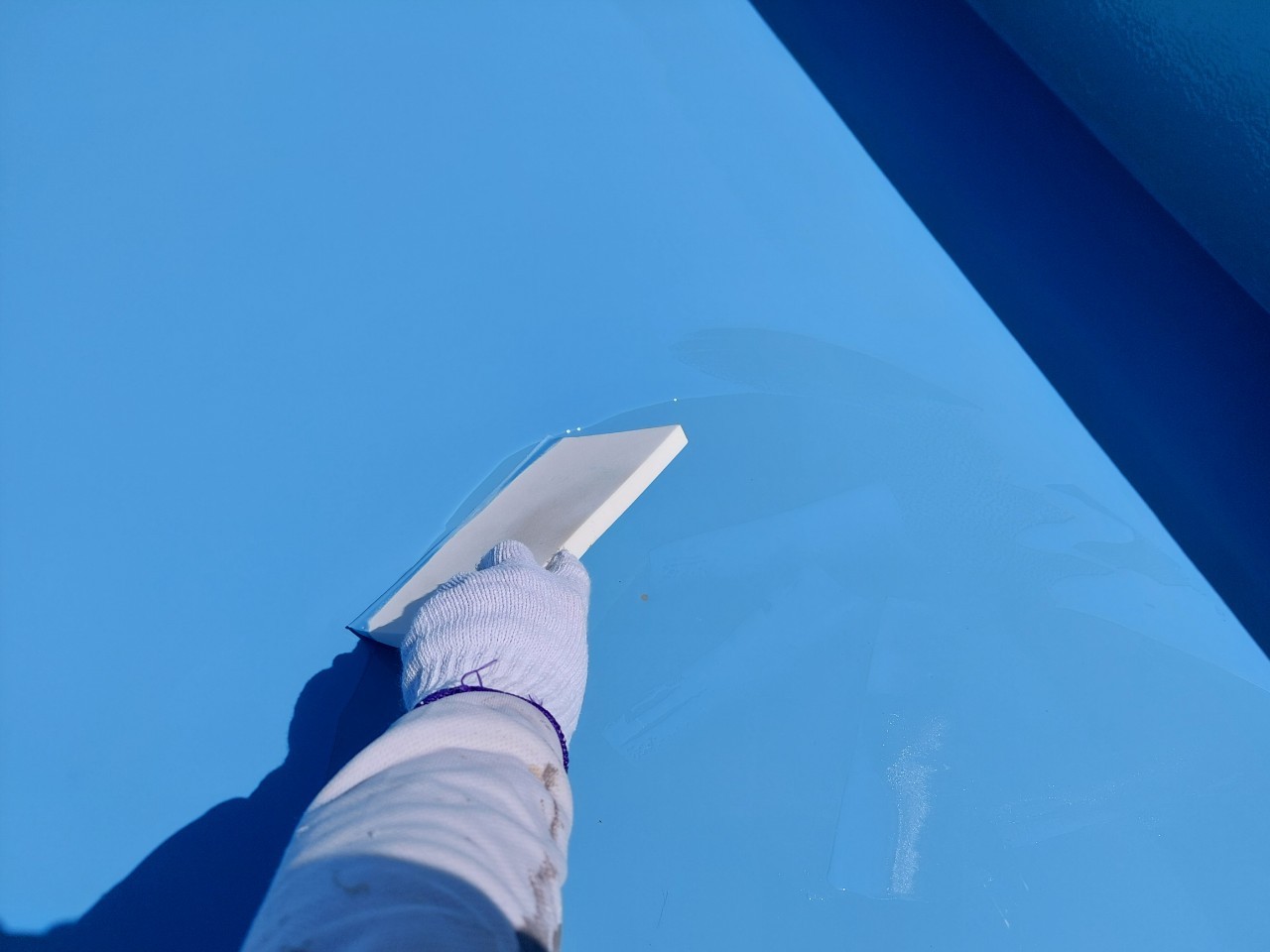 その後、ゴミやホコリ、コケ、油分などを除去し、防水材がしっかり密着するように清掃を行います。下地の状態が悪い場合は、この段階で補修作業を行います。