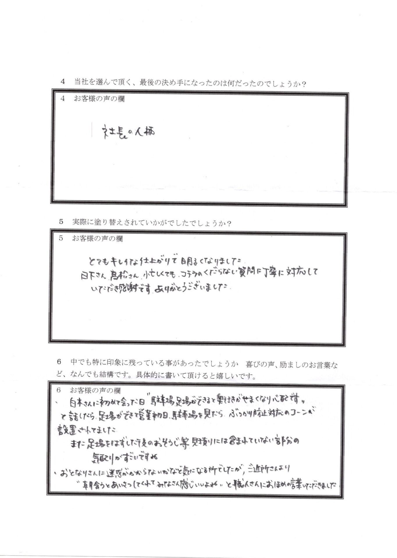 【③当社を知ってから、塗替え工事を依頼いただくまでに、何かためらったり、迷ったりすることはあったでしょうか? 又、それはどのようにして解消されましたでしょうか?】