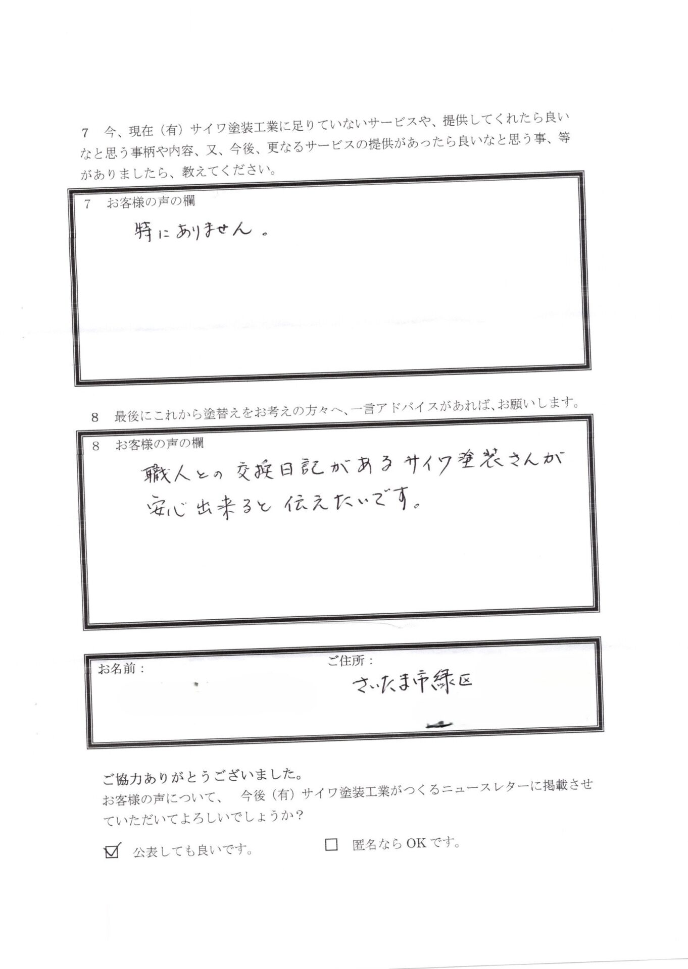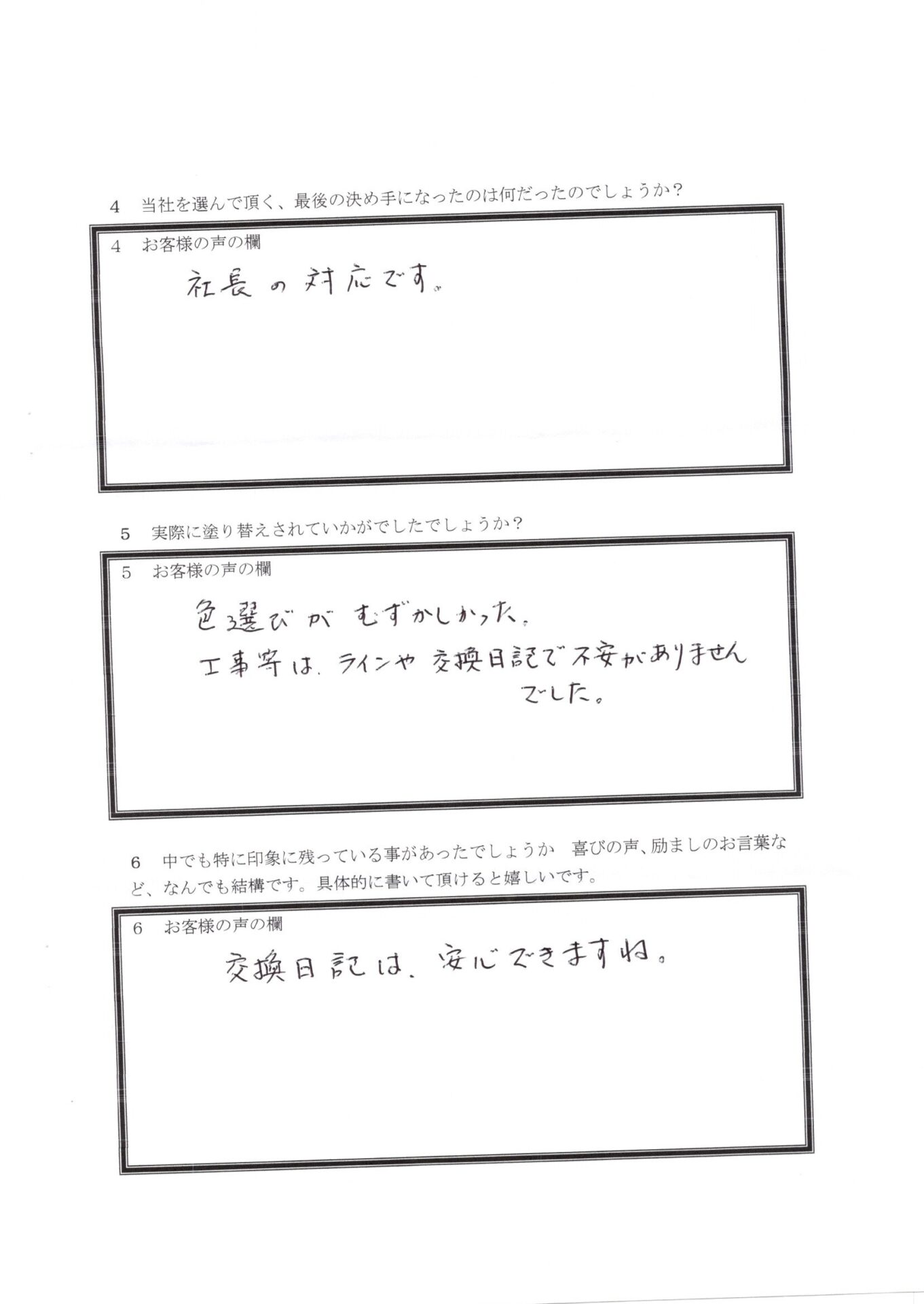 職人との交換日記があるサイワ塗装さんが安心できると伝えたいです。