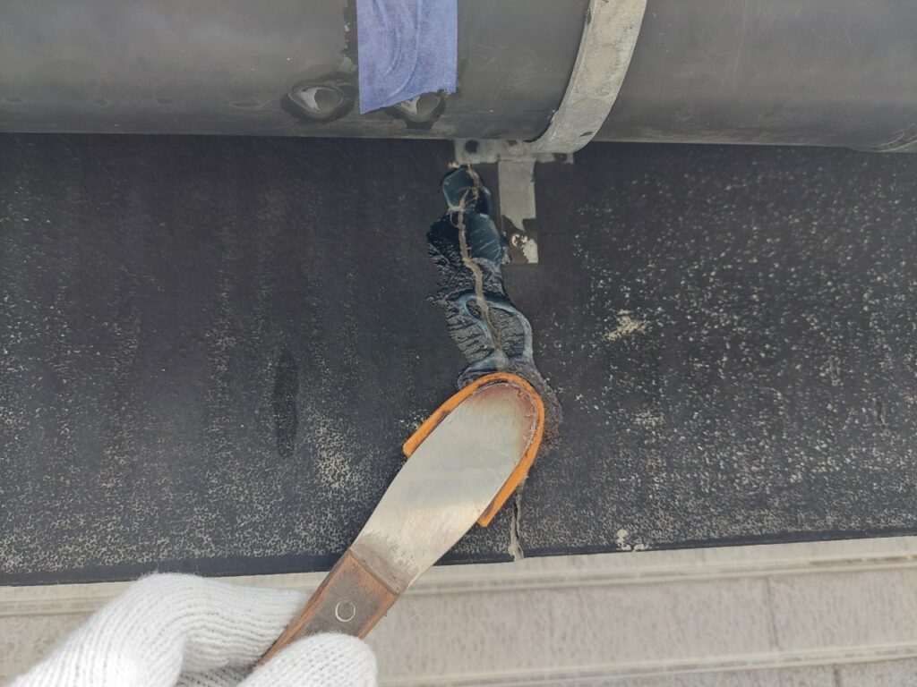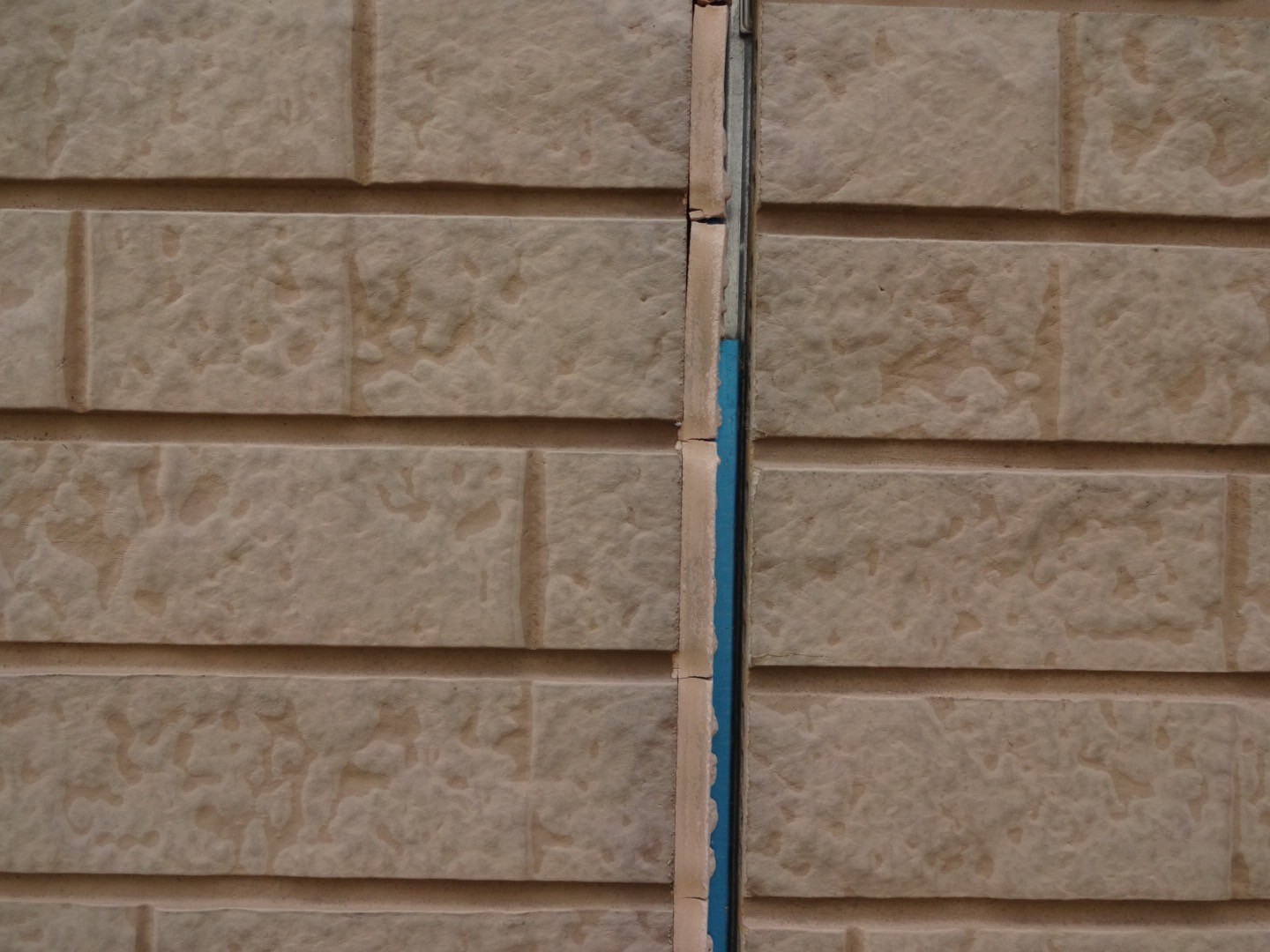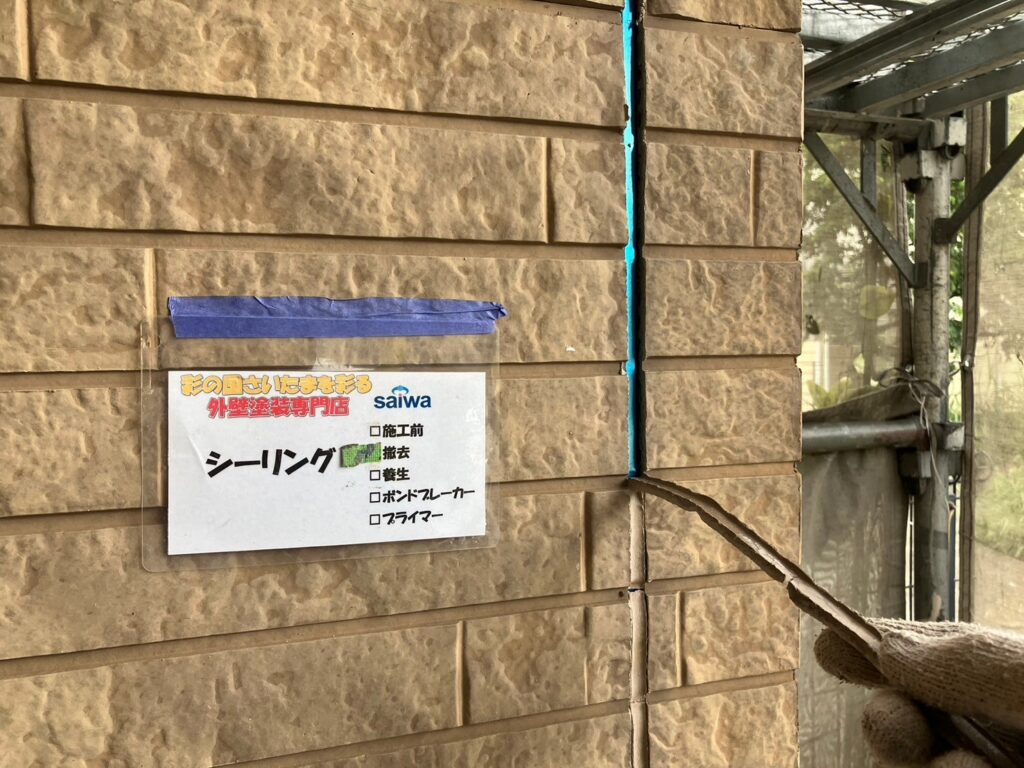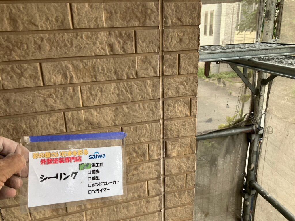 外壁の目地部分に断裂や剥離が発生していました。シーリングは雨水の侵入を防ぐ重要な役割があり、劣化すると防水性が低下します。そのため、既存シーリングを撤去し、新しく打ち直す必要がありました。