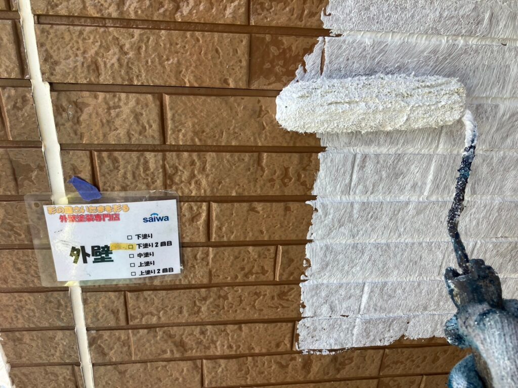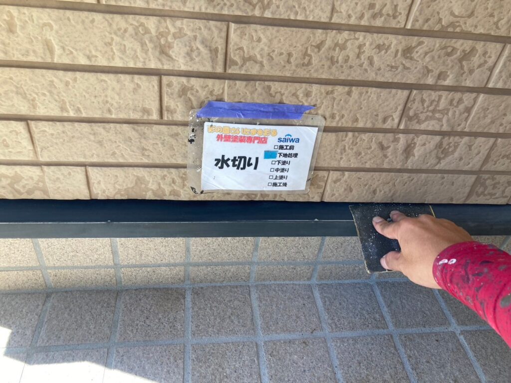 水切り塗装の下塗り工程 塗膜の土台を作る作業 さいたま市