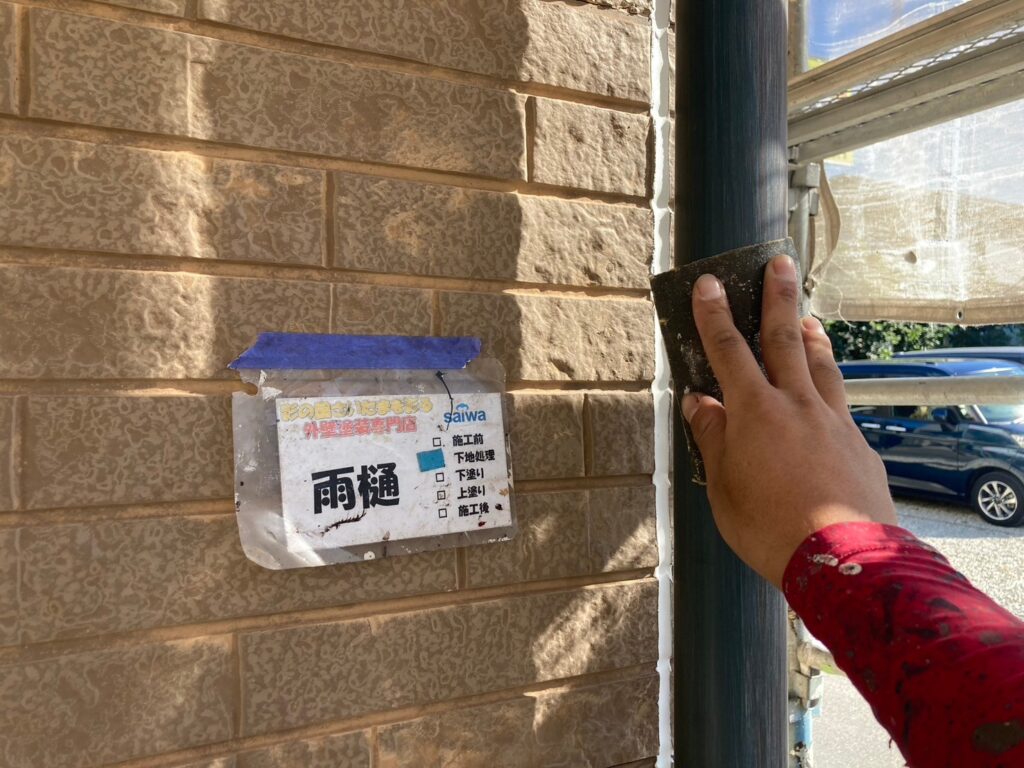 雨樋塗装前のケレン掛け作業 密着性を高める下地処理 さいたま市