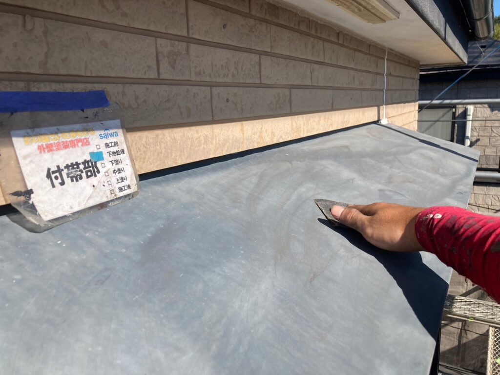 水切り塗装前のケレン掛け作業 錆を落とす下地処理 さいたま市 外壁塗装施工事例