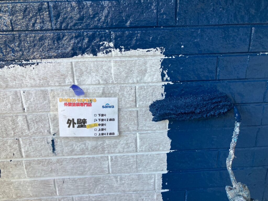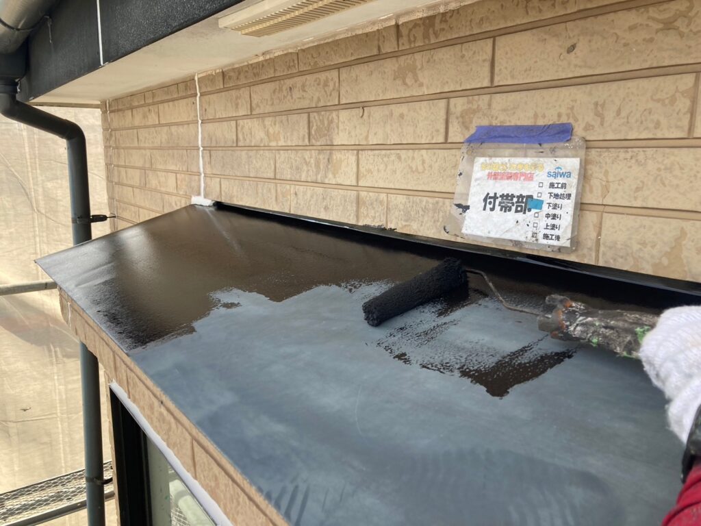 水切り中塗り塗装で塗膜に厚みを持たせる工程 さいたま市大宮区 施工事例