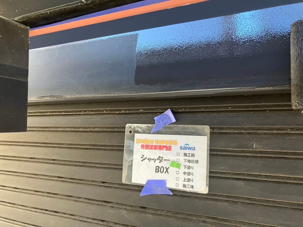 シャッターボックスの防錆性を高める下塗り塗装工程 さいたま市大宮区 施工事例
