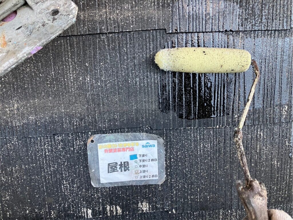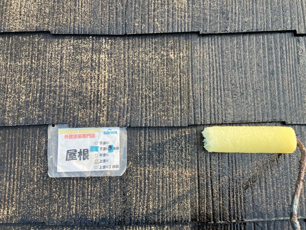 屋根下塗り2回目 塗膜の厚みと防水性を確保する屋根塗装工事 さいたま市大宮区