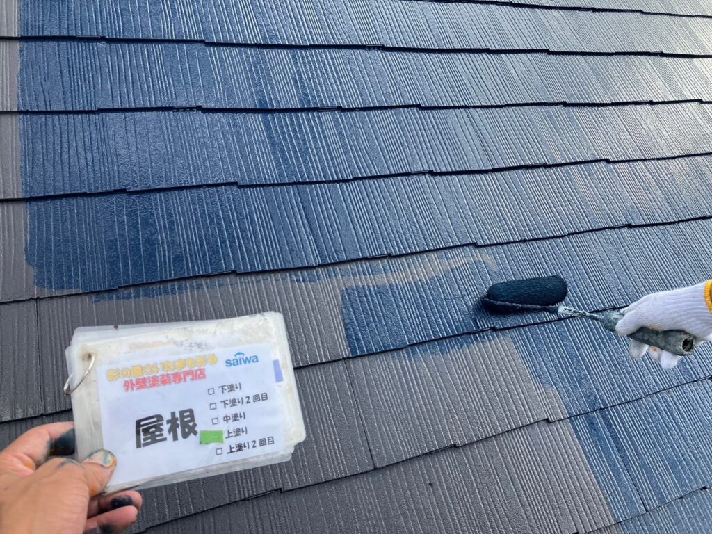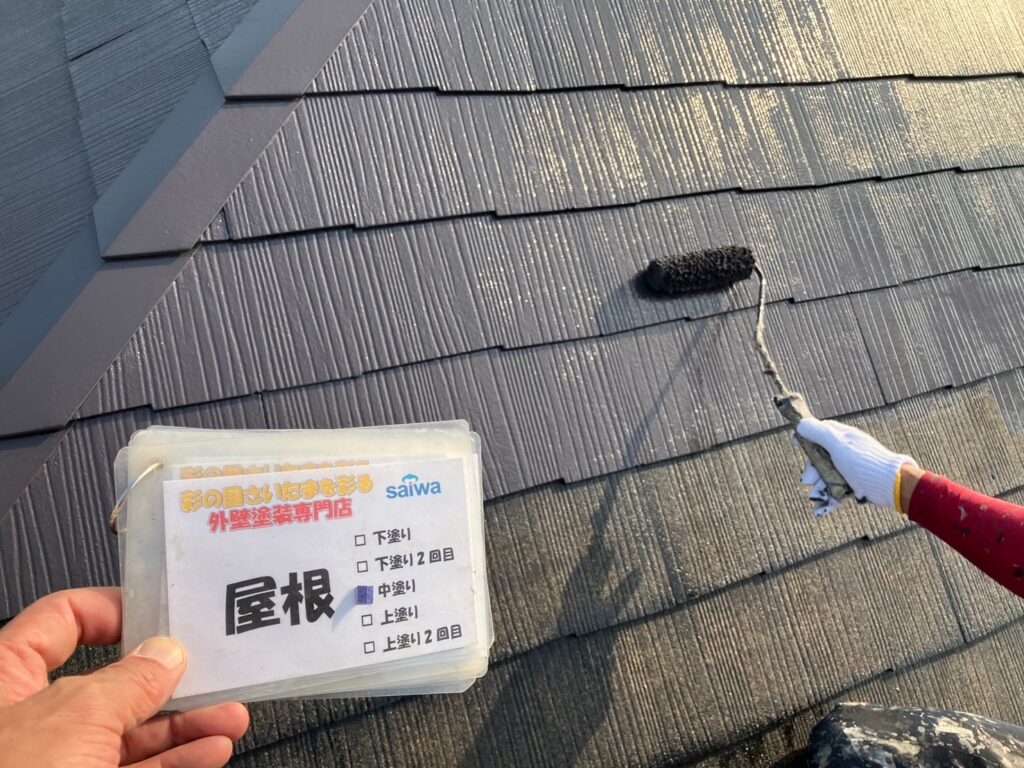 遮熱塗料サーモアイSiを使用した屋根中塗り施工 高反射塗装 さいたま市