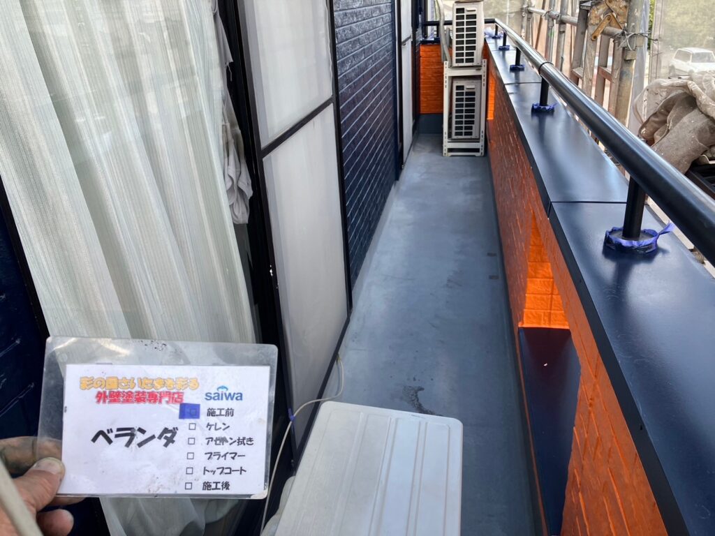 ベランダ防水トップコート塗布 雨漏り防止のための保護施工 さいたま市大宮区 施工事例