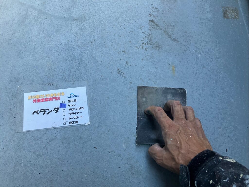 ベランダ防水前に汚れや劣化を除去するケレン掛け作業 さいたま市 防水工事施工事例