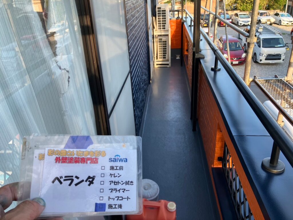防水性能を回復したベランダトップコート施工後 さいたま市大宮区 防水工事施工事例